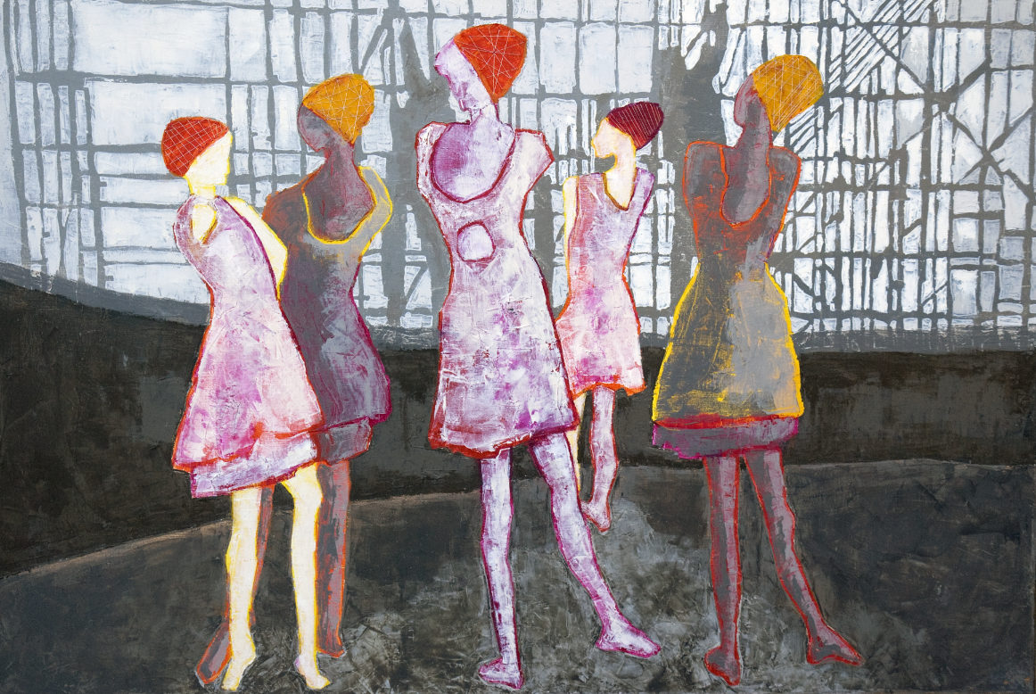 Oil paint, pigments, embroidery and ink drawing on linen. This painting will be used on the cover of the art book of the Canadian writer Don Thompson ‘the supermodel and the Brillo box’ in Iran.